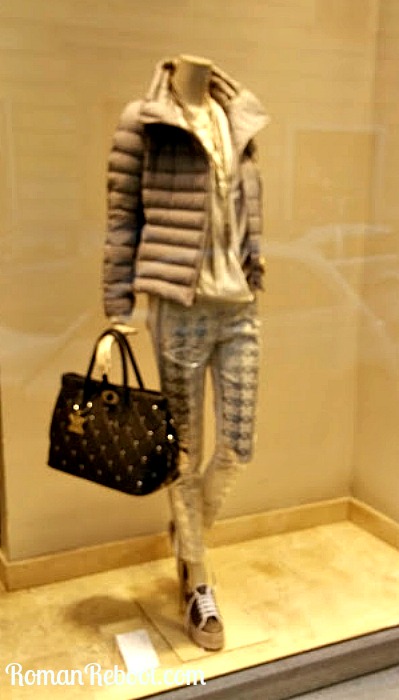 Let’s talk fashion. Style. What the Romans are wearing day to day. But first, let me acknowledge that this post would be infinitely better if it was filled with pictures of actual Romans. I get that. But originally this post was going to have no pictures. I didn’t want to stealth photo anybody, and I didn’t see interactions to ask for a pic going well. (Besides the fact that I generally have hands full of stroller navigating 45 degree angled sidewalks which does not make it easy to quickly pap someone.)