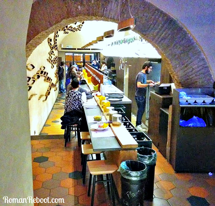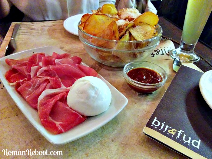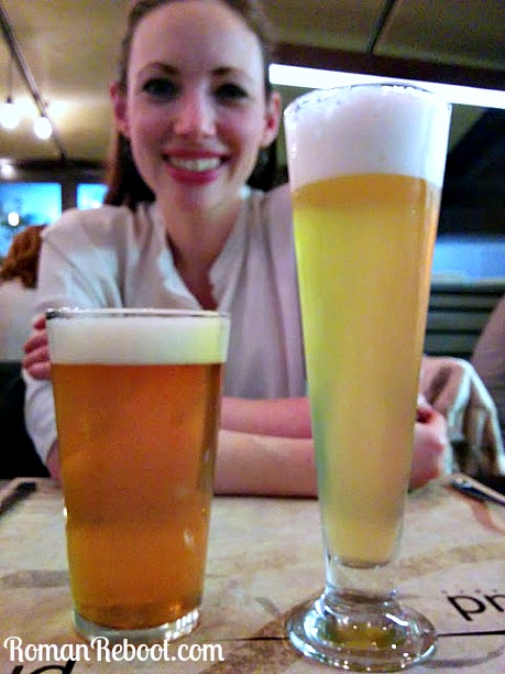 Trastevere was very adorable, but we didn’t poke around much. Our destination, Bir and Fud, was just a hop, skip, and jump from the river. We walked in and found this sleek bar. Ah, look at that row of glorious taps. It wasn’t crazy crowded when we were there, but friends warned us you can’t walk through at all when it fills up. I believe it.