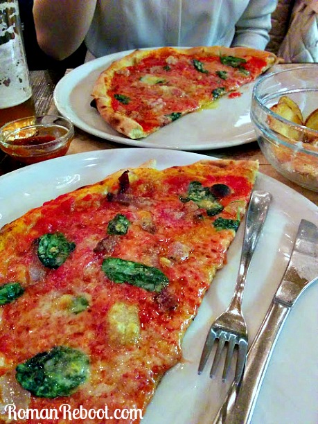 We split a pizza, which they conveniently pre-split for us. I was glad we split. That’s a big pizza.