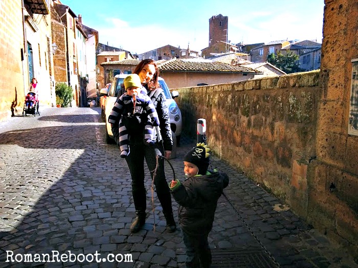 Strike 1. There is a shuttle from the top of the funicular into the center of town. We should have taken it. We didn’t. I’m used to Tuscan hill towns that are teeny tiny. Orvieto is not as small. It would have been a fine walk for any able-bodied person, but we blew a lot of toddler good will on the trek. For some reason, we opted not to stroller on this outing. Mistake.