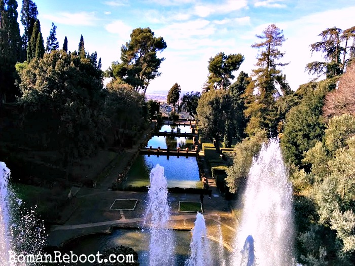 Villa d’Este is a short bus trip from Rome. (Tivoli is 18 miles east of Rome.) While in Tivoli, you could also make a stop at Hadrian’s Villa, but that is a little trickier by bus. If you can’t stop at Hadrian’s Villa, just look around Villa d’Este. Hadrian’s Villa provided much of the raw material used to create the fantastical fountain fun.