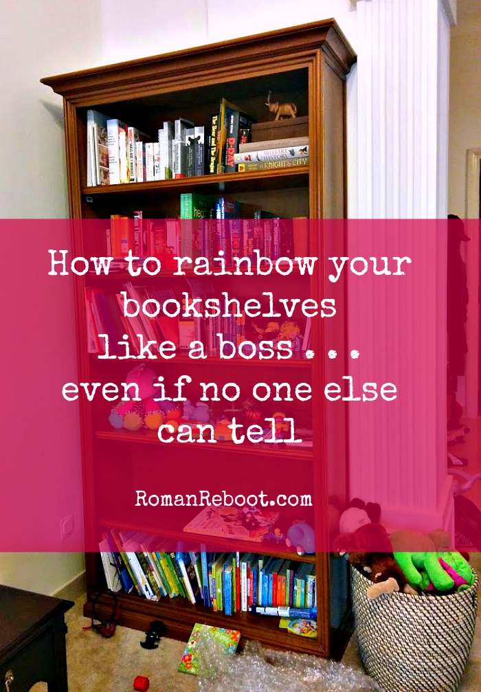 In the meantime, while I decide whether to cut the Clancy cord, I at least decided to spruce up the bookshelf. Why not try this rainbow-ing that everyone is doing on Pinterest?