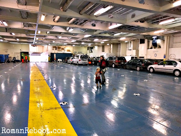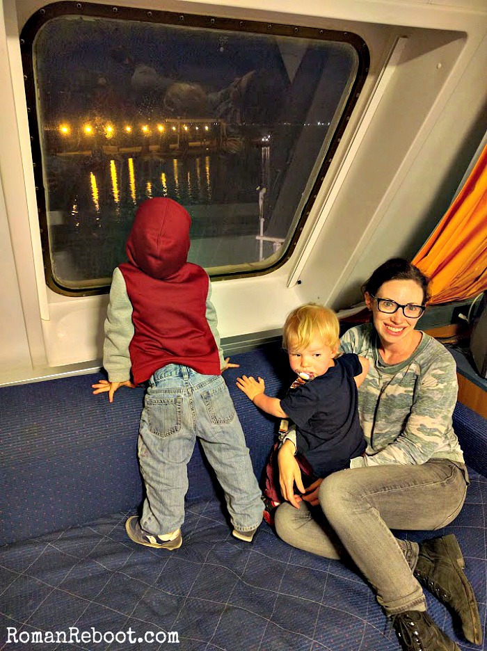 We packed a separate overnight bag for the ferry so we’d be able to grab and go. Of course, we were still the last out because we were rounding up diapers, jackets, toys, snacks, etc. But we would have looked SO COOL if we just popped out, grabbed one bag, and headed in. Maybe someday.