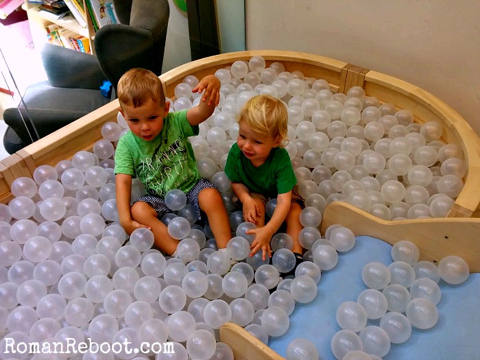 - They have toys for lots of ages. There is a padded area with toys for the young crowd, but also slides, ball pit, kitchen area, dress up space, and plenty more for older kids. They have a separate hands on area where they offer painting and Legos.