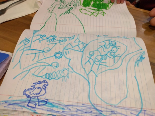 Me: Oh, you drew the baby! Aww. Is he holding a flower?