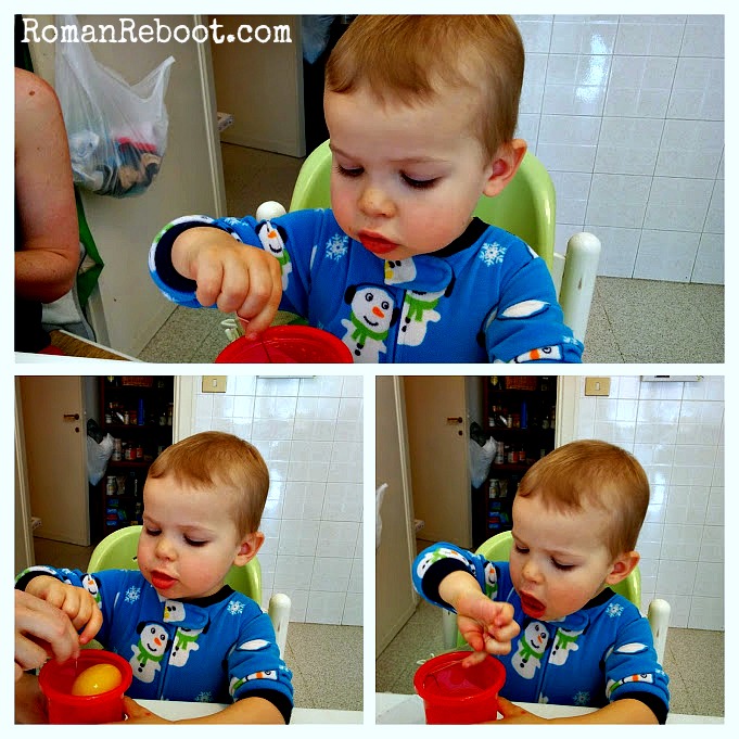 Our attempt to dye brown eggs was much more successful than I thought. Dying eggs with a toddler, however . . . Let’s just say that this may be an outdoor activity in the future.