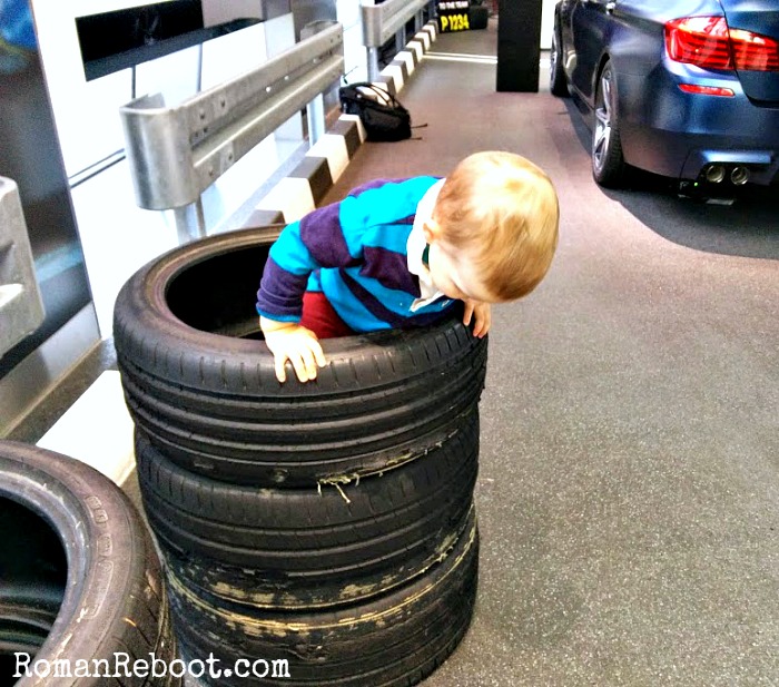 This was a HUGE hit with the kids. And by kids, I mean Henry. This futuristic building showcases very pricy cars and motorcycles that you can climb all over. And then try to persuade your toddler to climb OUT of. Poor James. He still recounts the stink eye he received from a line of grown men upon trying to extricate Henry from the $100,000 car so they could have their turn.