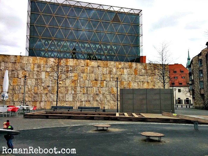 It is definitely an interesting, recent addition to downtown Munich. I’ve never seen anything like it. And, there is a small playground right outside. This is the only playground we spotted in all of our trekking around downtown. BONUS.