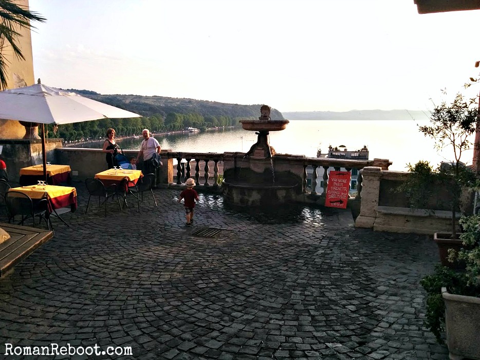- We enjoyed an evening wander and dinner watching the sunset over the lake at Il Vecchio Salus in Anguillara. Although we didn’t go, Anguillara seems to have an expanse of public beach along with a jump park and rides area.